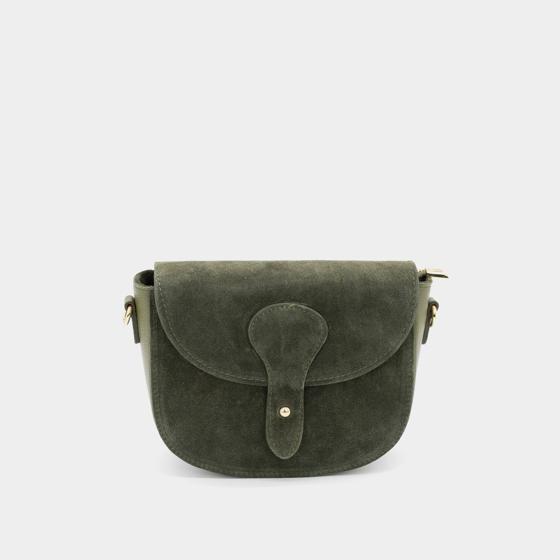 Elegantna i praktična, ova ženska torba izrađena je od kombinacije prirodne kože i antilopa u prelepoj maslinasto zelenoj nijansi. Klasičan oblik sa zaobljenim ivicama i poklopcem na preklop daje joj vintage notu, dok zlatni metalni detalji dodaju dozu luksuza i topline. Tekstura antilopa na prednjem delu torbe stvara vizuelnu dubinu i sofisticiran izgled, dok glatka prirodna koža sa strane obezbeđuje čvrstinu i trajnost. Odvojivi i podesivi kaiš omogućava nošenje torbe preko ramena ili crossbody, u zavisnosti od potrebe i stila.