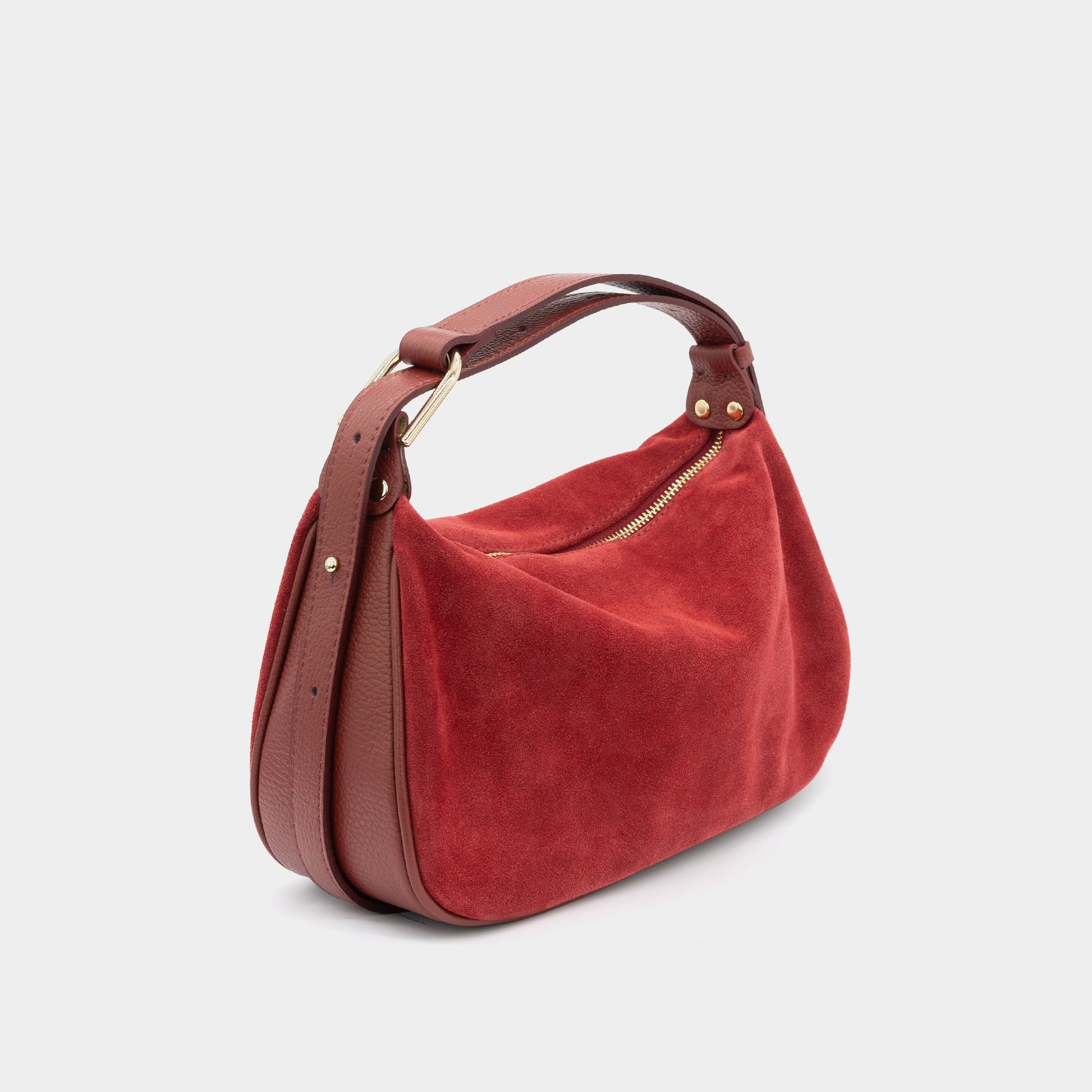 Izrađena od visokokvalitetne brušene kože, ova torba u bogatoj bordo boji odiše toplinom, karakterom i bezvremenskom elegancijom. Kombinacija brušene površine i glatkih kožnih detalja u nijansi vina stvara prefinjen kontrast, dok zlatni patentni zatvarač dodaje luksuzan završni detalj. Zahvaljujući svom obliku i mekanoj strukturi, torba je udobna za nošenje i dovoljno prostrana za sve svakodnevne potrepštine. Podesiva ručka omogućava nošenje u ruci ili na ramenu, čineći je savršenim izborom za dame koje vole praktičnost uz dozu sofisticiranosti.