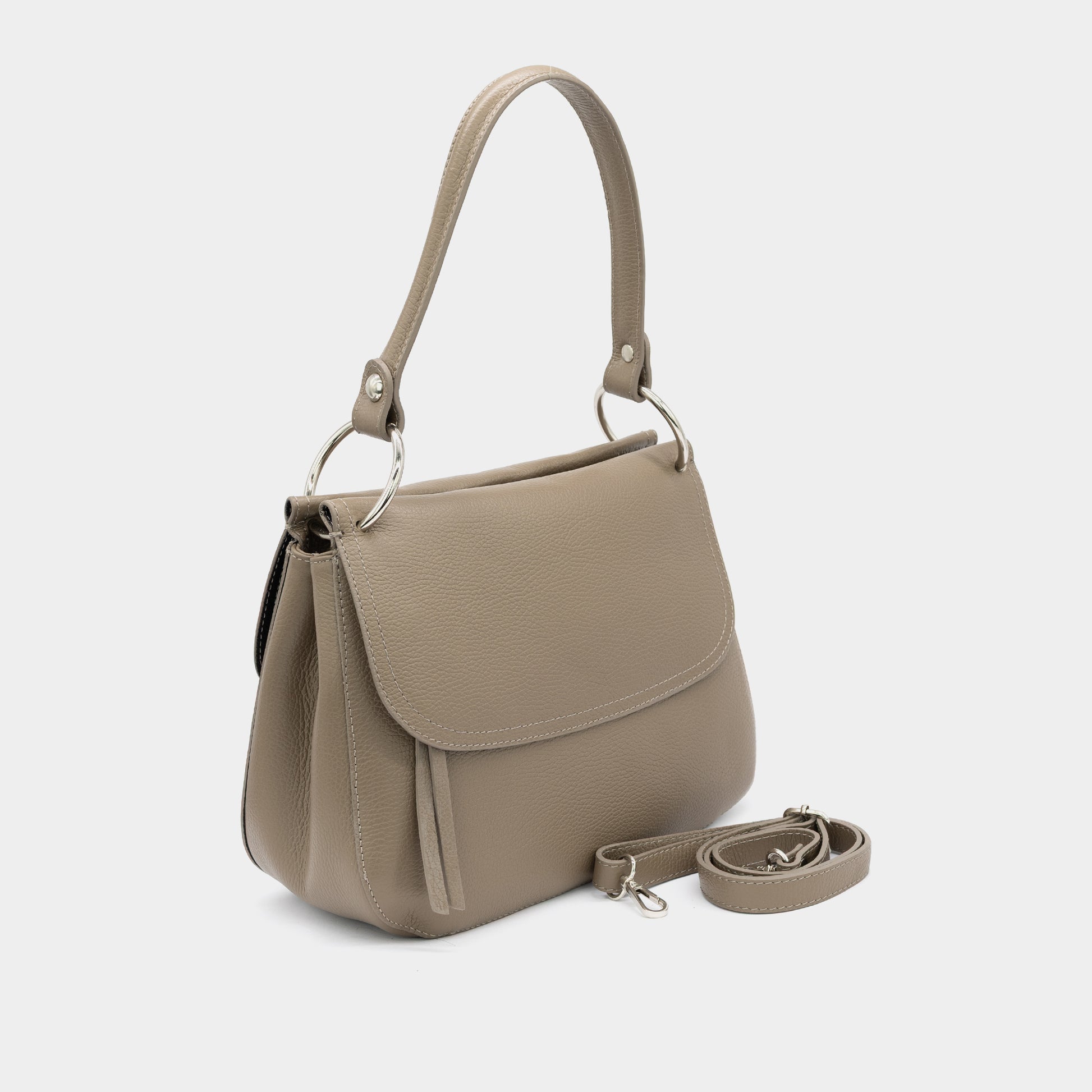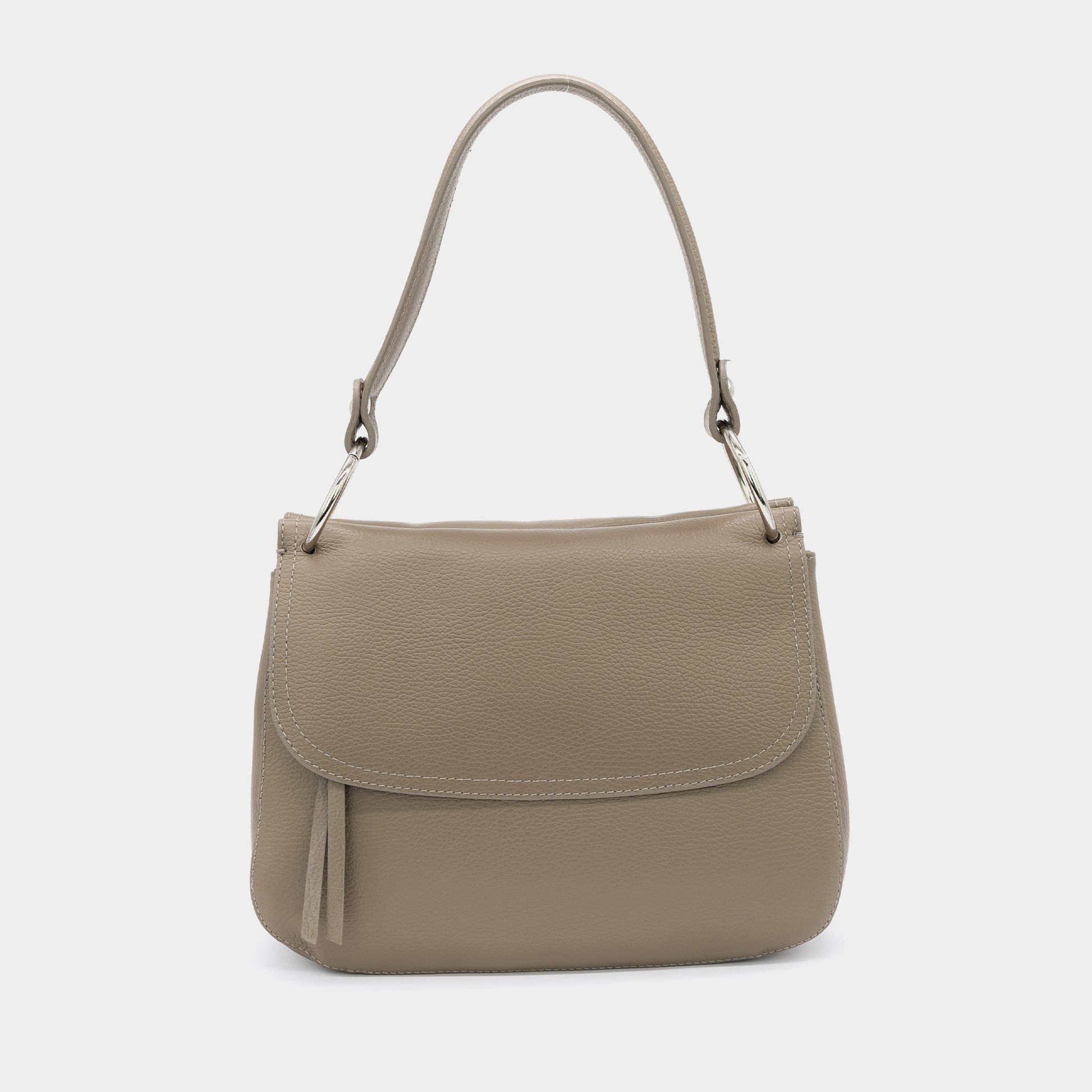 Ova elegantna ženska torba u sofisticiranoj bež nijansi izrađena je od visokokvalitetne prirodne kože, koja spaja izdržljivost i bezvremensku eleganciju. Savršeno se uklapa u svaki stajling, od poslovnog do casual, nudeći ženstven i profinjen izgled. Zahvaljujući svom praktičnom dizajnu, torba pruža dovoljno prostora za svakodnevne potrepštine. Opremljena je kratkom ručkom za nošenje u ruci i podesivim kaišem koji omogućava nošenje preko ramena. Prednji preklop sa magnetnim zatvaranjem dodaje notu jednostavne elegancije, dok metalni detalji u srebrnoj boji naglašavaju moderan karakter torbe.