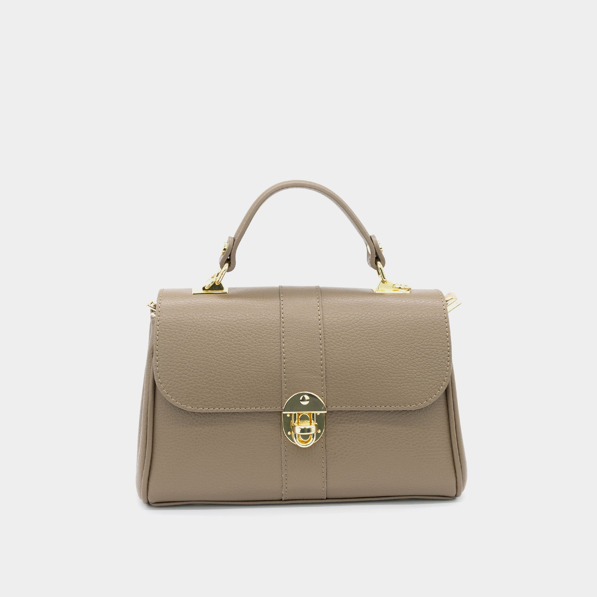 Ova ženska torba od prirodne kože u prefinjenoj taupe (sivo-bež) nijansi donosi bezvremensku eleganciju i praktičnost u jednom modelu. Izrađena od kvalitetne zrnaste kože, torba se ističe minimalističkim dizajnom i pažljivo izrađenim detaljima koji odražavaju klasičan, ali moderan stil. Kompaktna, ali dovoljno prostrana za svakodnevne potrebe, ova torba je savršen izbor za posao, grad ili večernji izlazak. Čvrsta ručka omogućava elegantno nošenje u ruci, dok podesivi kaiš pruža mogućnost nošenja preko ramena ili ukoso. Zlatna kopča s bravicom dodatno naglašava luksuzan izgled i sigurnost vaših stvari.