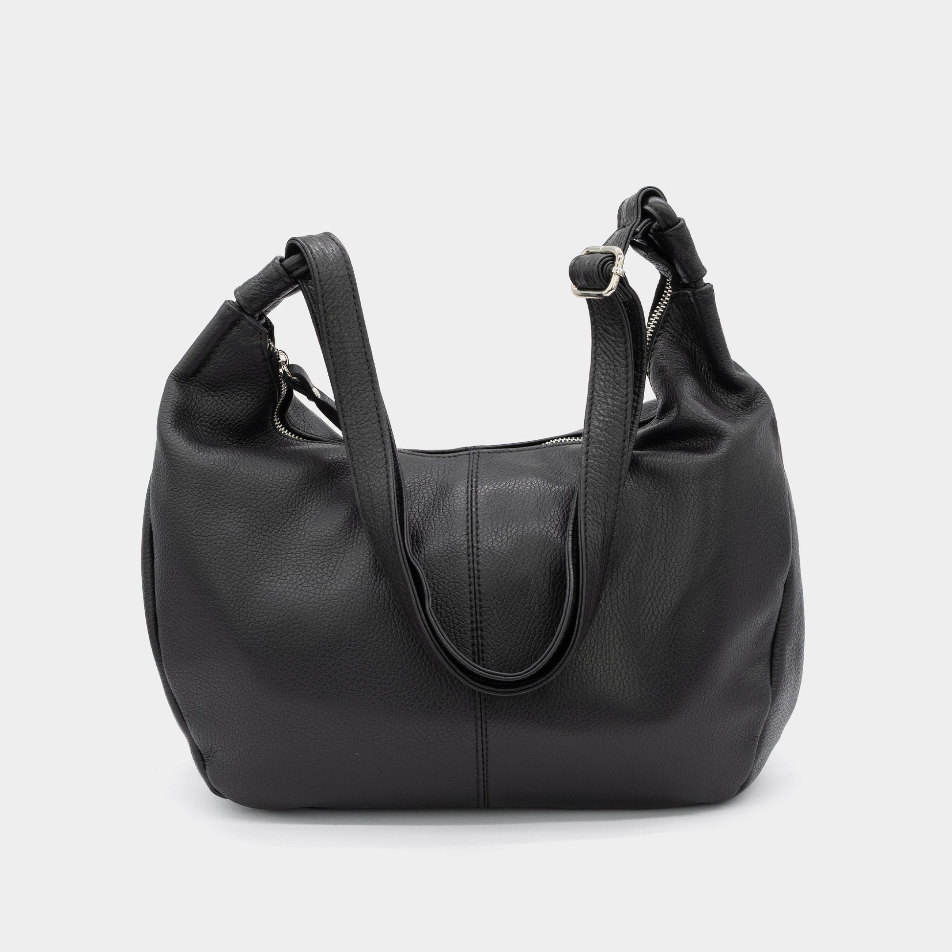 Ova prostrana ženska torba izrađena je od visokokvalitetne prirodne kože, kombinirajući udobnost i funkcionalnost sa suptilnim, klasičnim dizajnom. Crna boja daje joj svestranost i eleganciju, čineći je savršenim izborom za svakodnevnu upotrebu — bilo da ste na poslu, u šetnji ili na putovanju. Torba se zatvara patentnim zatvaračem i sadrži više unutrašnjih džepova koji olakšavaju organizaciju. Sa zadnje strane se nalazi dodatni džep s patentnim zatvaračem za praktičan pristup najvažnijim stvarima. Mekane ručke i podesivi kaiš omogućavaju udobno nošenje na ramenu ili preko tijela.