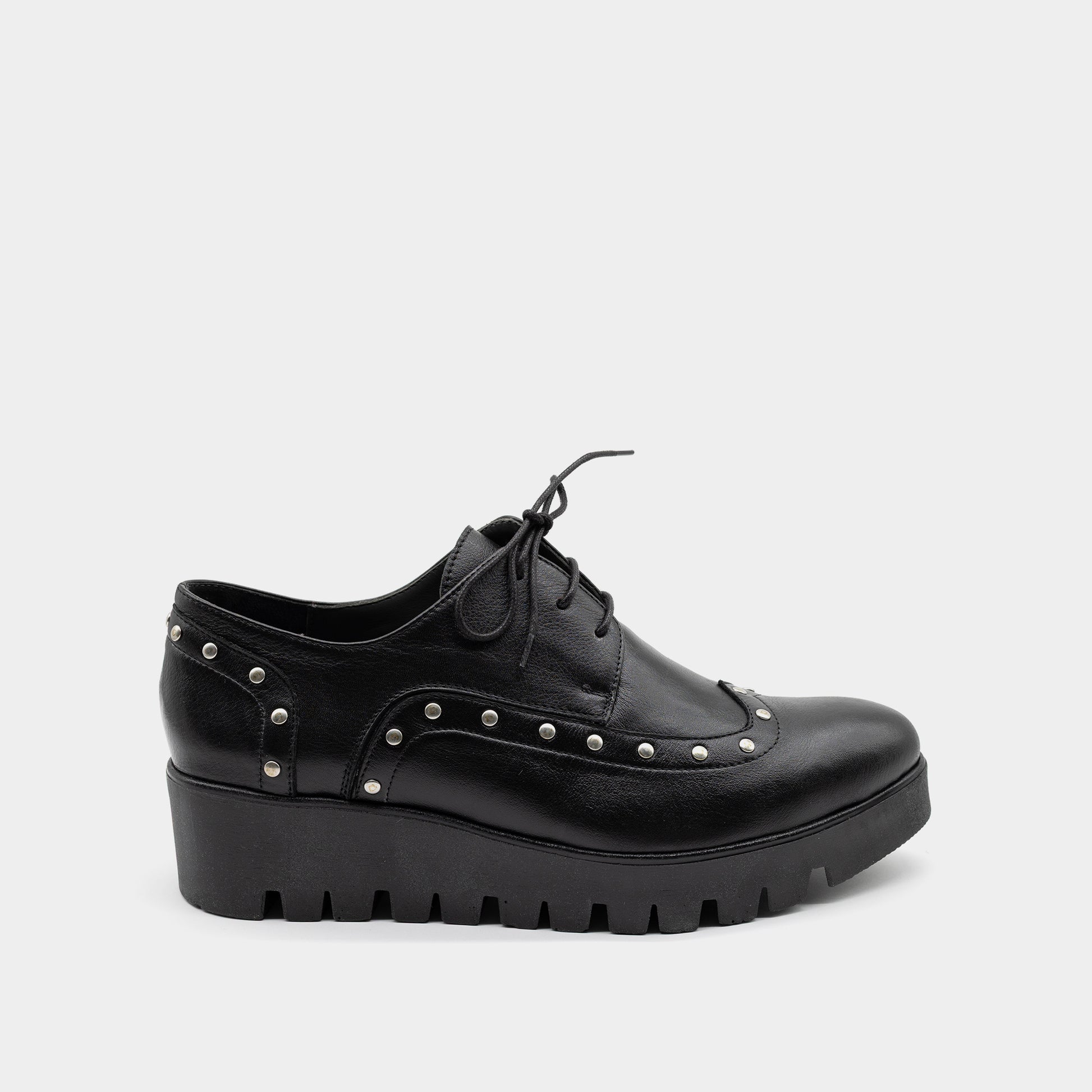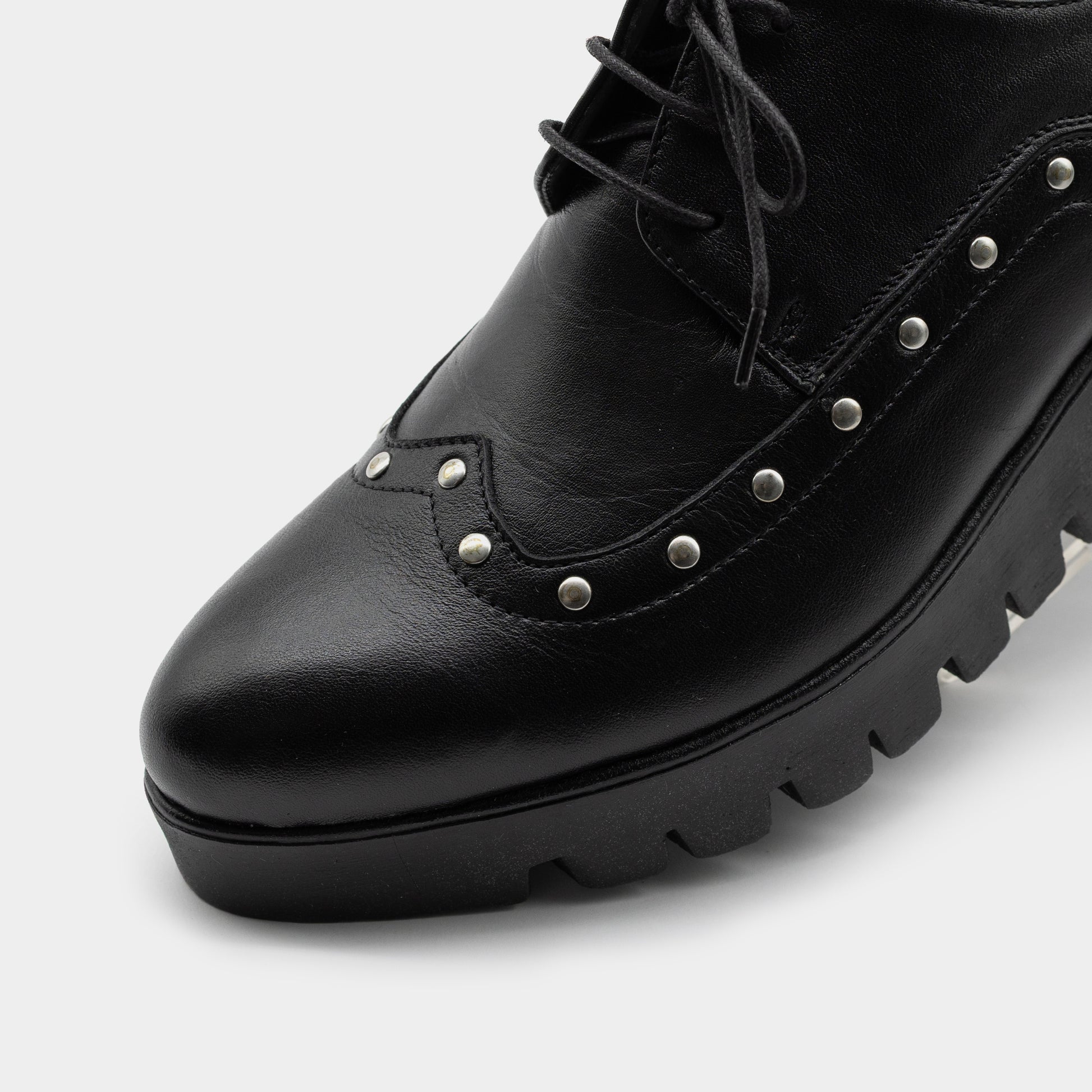 Ove ženske crne cipele na platformu predstavljaju spoj urbanog stila i elegancije. Izrađene su od kvalitetne kože, sa dekorativnim metalnim nitnama koje dodaju moderan, edgy izgled. Klasičan model sa pertlama osigurava udobno pristajanje, dok povišeni valoviti đon pruža dodatnu visinu i stabilnost tokom hodanja. Zahvaljujući svom atraktivnom dizajnu i udobnosti, ove cipele su savršen izbor za svakodnevne modne kombinacije, ali i za posebne prilike kada želiš dodati dašak stava i samopouzdanja svom outfitu.