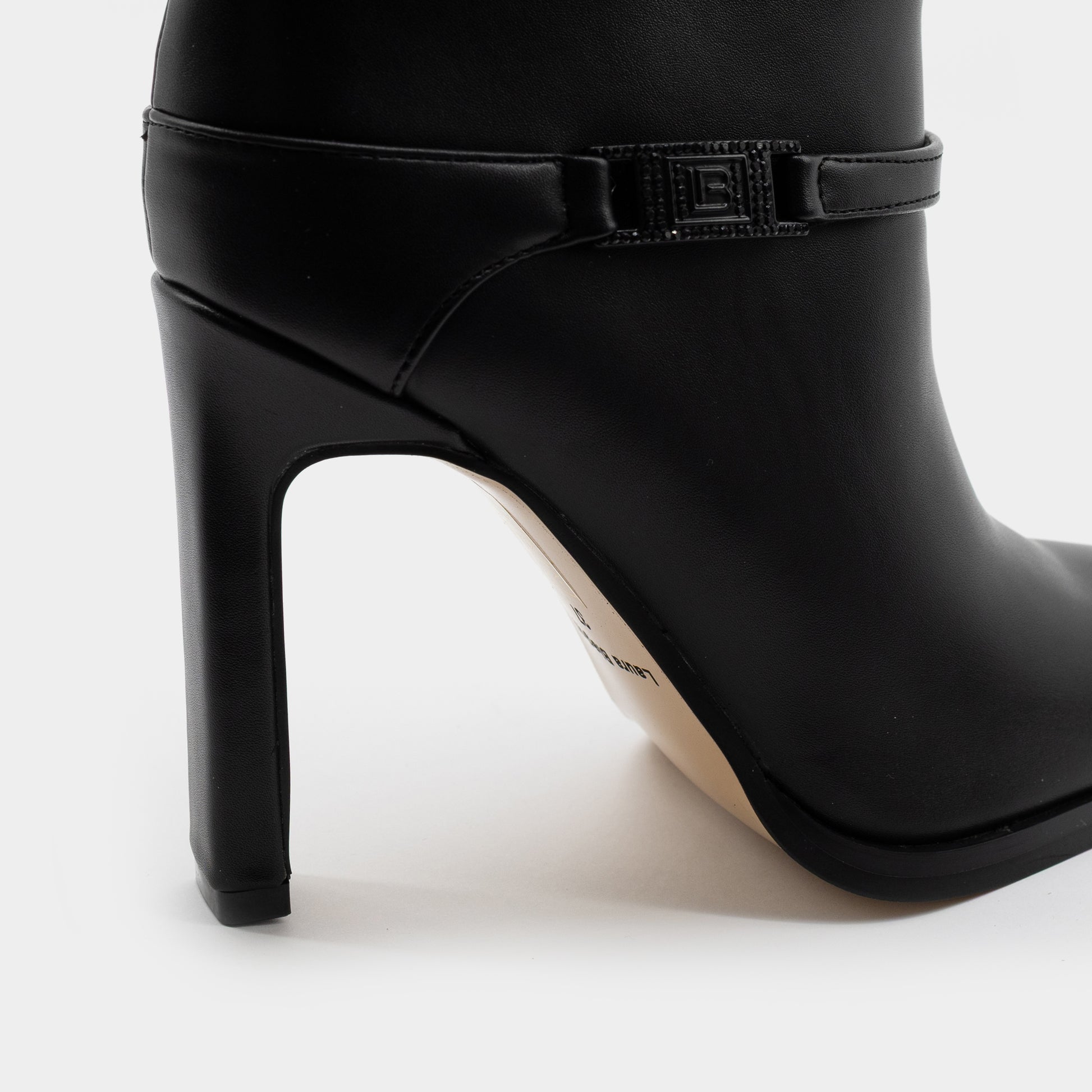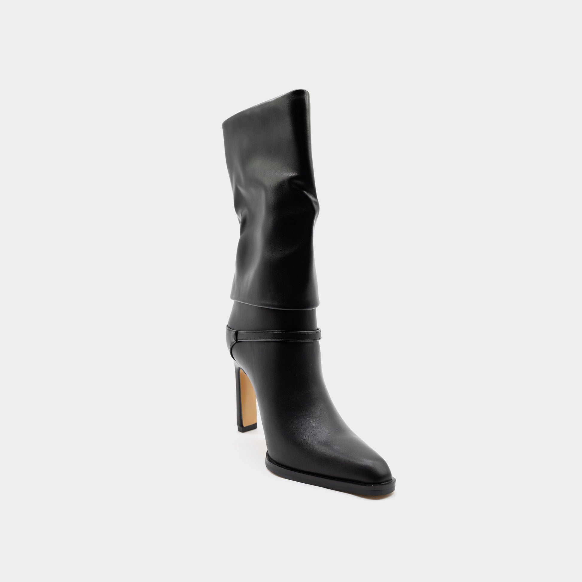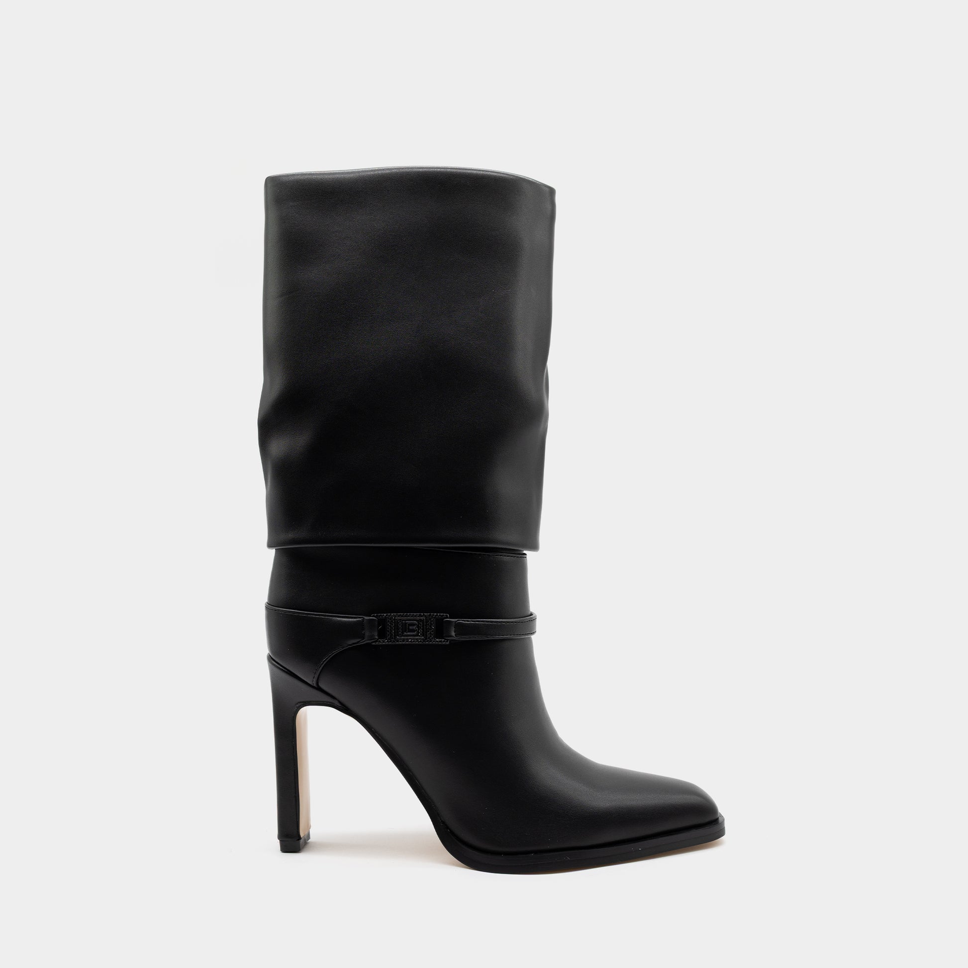 Ove ženske crne čizme na visoku potpeticu predstavljaju savršenu kombinaciju glamura i savremenog stila. Izrađene od mekane eko kože, odlikuju se efektno spuštenom sarom koja dodaje dašak ležerne elegancije. Tanka visoka potpetica vizuelno izdužuje nogu i pruža ženstven, sofisticiran izgled. Diskretan ukrasni kaiš sa LB logom u predelu gležnja unosi luksuzni detalj, dok udobna unutrašnjost omogućava lako nošenje. Idealne su za večernje izlaske, poslovne kombinacije ili posebne prilike kada želite da izgledate moćno i elegantno.