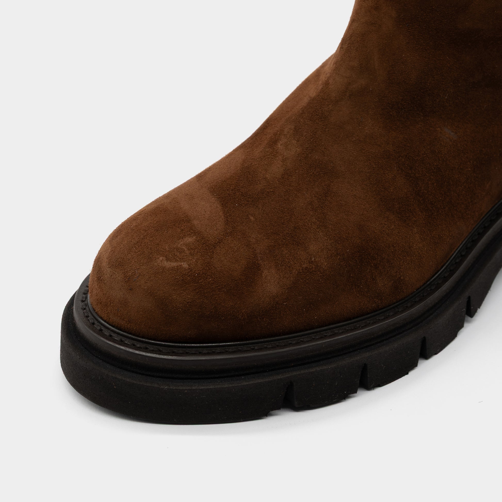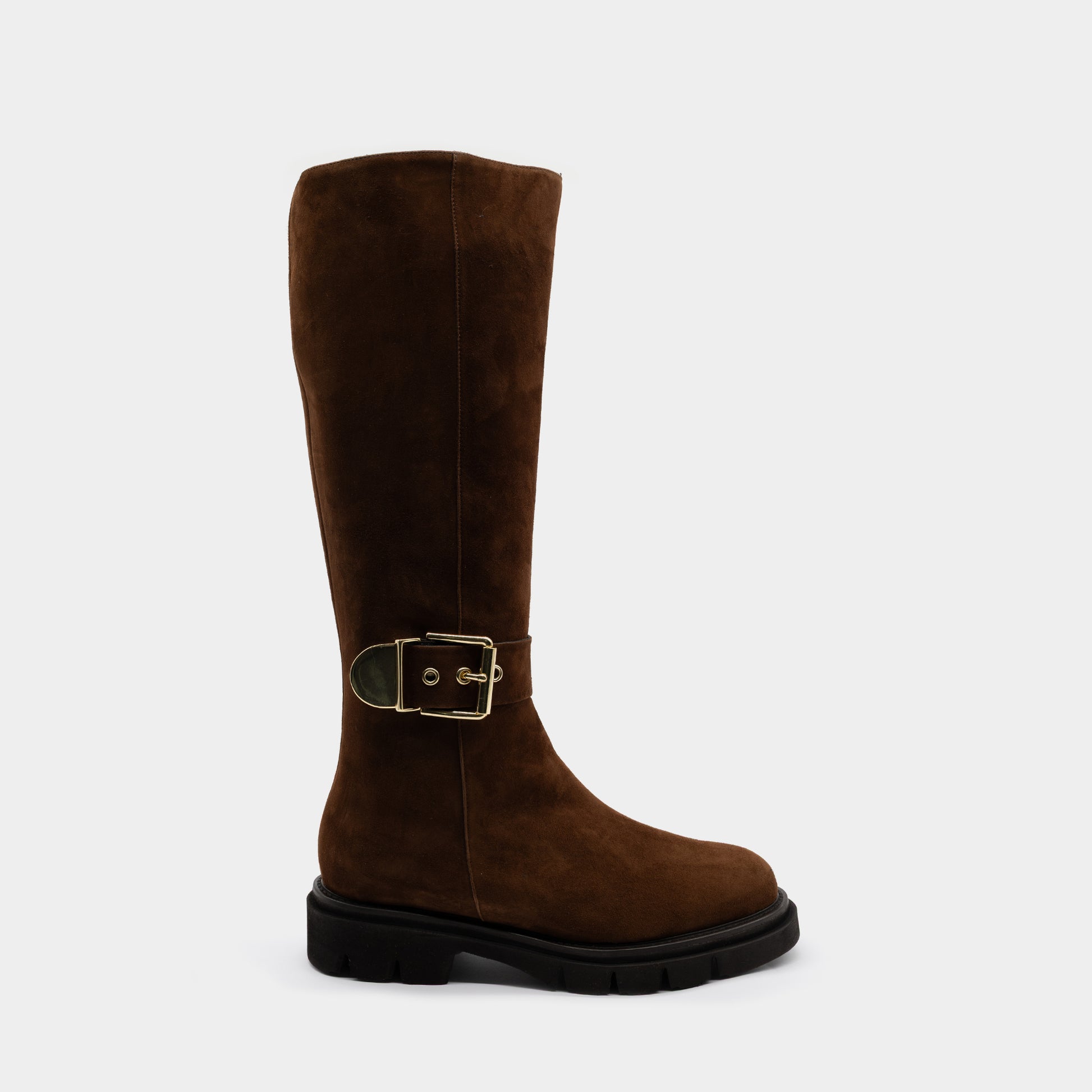 Čizme od brušene prirodne kože u toploj braon nijansi kombinuju udobnost i prefinjen izgled. Masivni đon pruža stabilnost i savršeno pristaje uz svakodnevne zimske kombinacije, dok zlatna kopča dodaje notu luksuza. Zahvaljujući visokom sara i mekom materijalu, ove čizme su idealan izbor za hladne dane kada želite da spojite toplinu, stil i udobnost u jednom modelu.