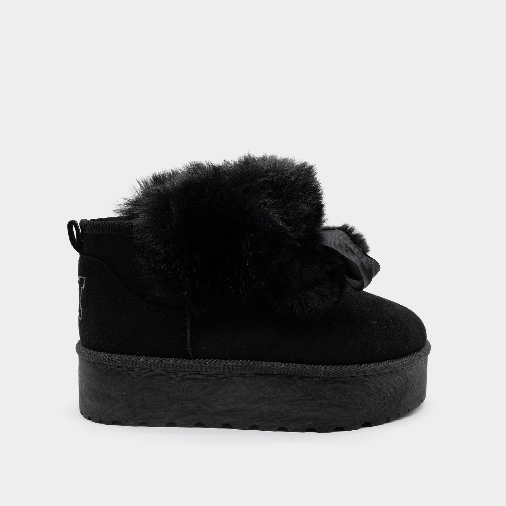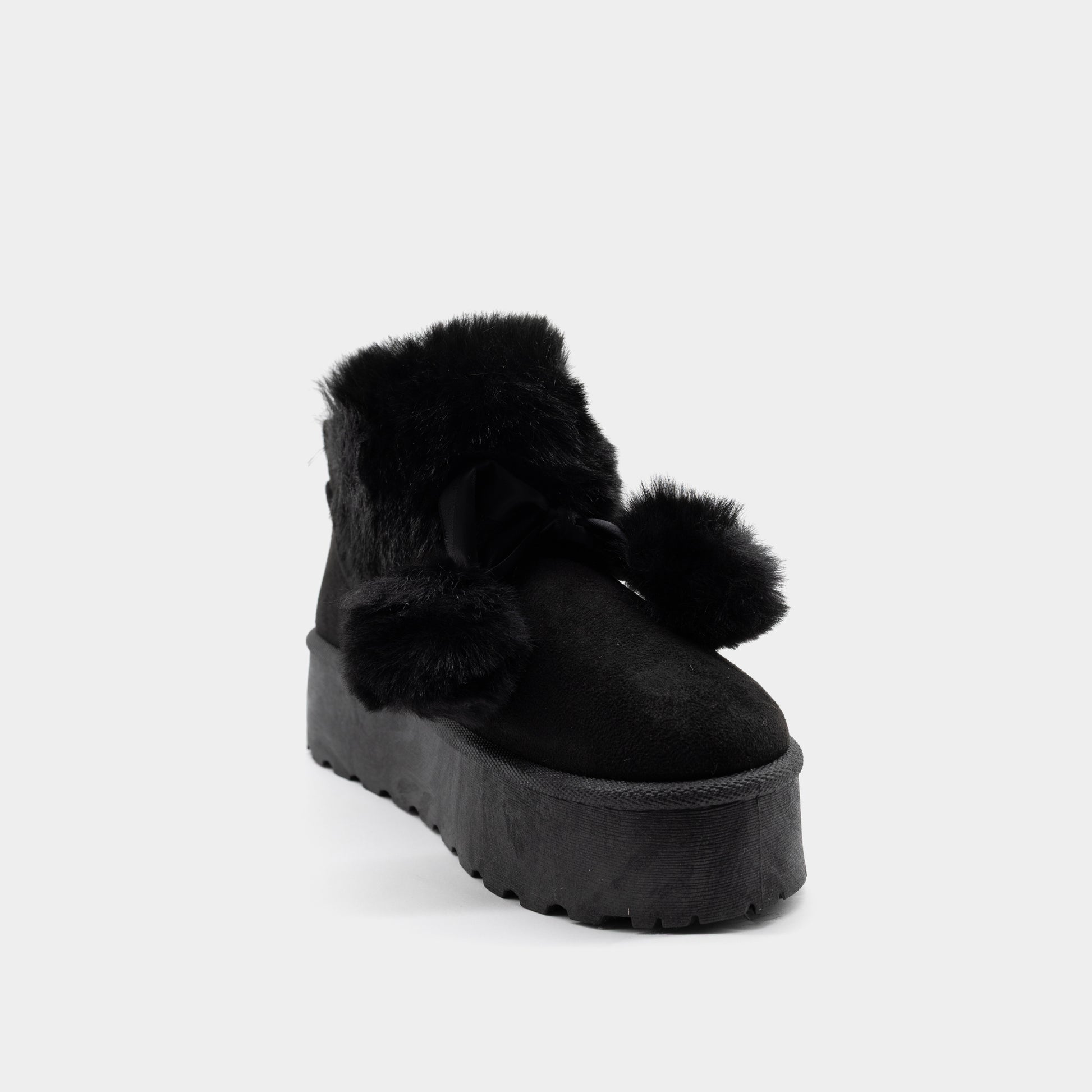 Ove ženske zimske čizme sa platformom u elegantnoj crnoj boji predstavljaju savršen spoj udobnosti i stila za hladne dane. Izrađene su od mekanog materijala koji imitira brušenu kožu, dok je gornji dio obložen bogatim i mekanim krznom koje pruža izuzetnu toplinu i udobnost. Dekorativna satenska mašna sa pufnastim detaljima daje ovim čizmama ženstven i moderan izgled. Zahvaljujući povišenom đonu sa valovitom teksturom, model pruža stabilnost i zaštitu od hladnoće, idealan za svakodnevno nošenje. Ove čizme lako se kombinuju uz farmerke, helanke ili zimske haljine, čineći ih must-have komadom svake moderne žene.